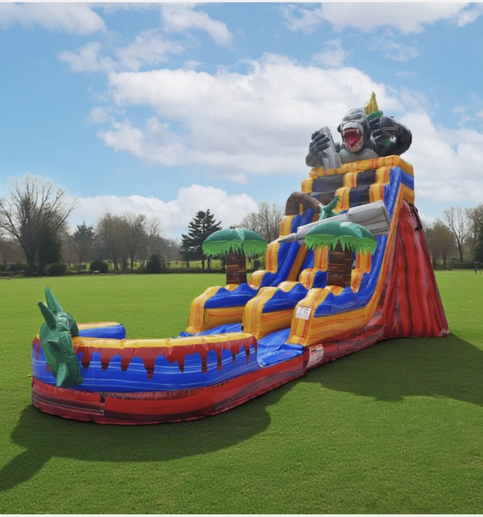 Make a splash with our towering 23ft Ape Water Slide—an unforgettable centerpiece for any event! Standing an impressive 23 feet tall, this eye-catching inflatable features a bold and playful ape design that instantly grabs attention and sets the tone for high-energy fun.